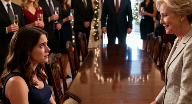 The Christmas tree glittered like a showroom display in my in-laws’ marble foyer, every ornament expensive and cold. I stood there, seven months pregnant, holding a glass of sparkling water while laughter rolled across the room. That was when my mother-in-law, Margaret Collins, tapped her manicured nail against the dining table and smiled at me like a host calling for a toast.